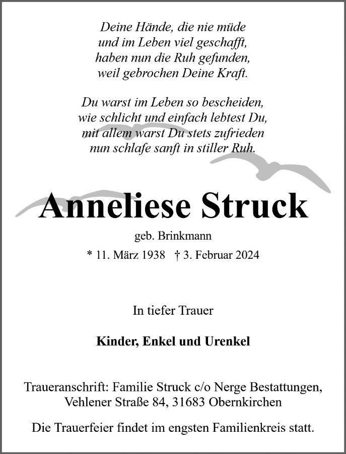 Anneliese Struckgestorben am 3. Februar 2024
