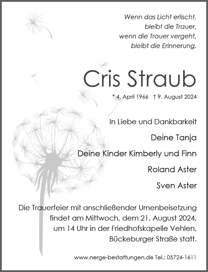 Cris Straubgestorben am 9. August 2024