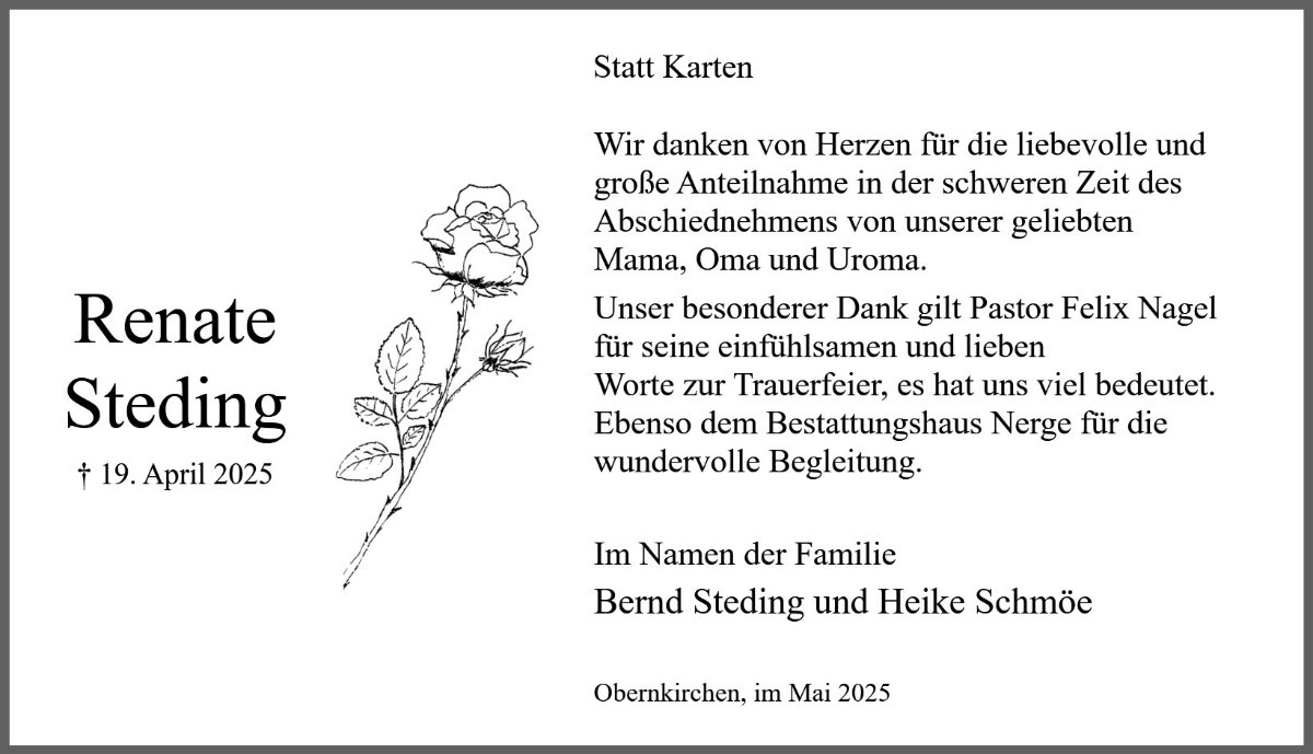 Renate Stedinggestorben am 19. April 2025